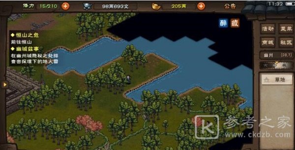 答:烟雨江湖刘蕙兰在幽州城北村子里,坐标(11,14)