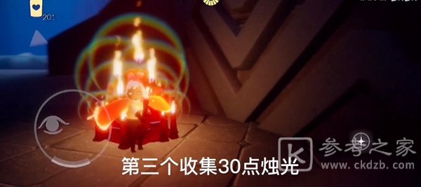 玩家在地图中收集30根蜡烛,每根蜡烛都有1点烛光,即可完成任务。