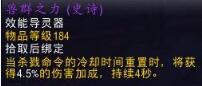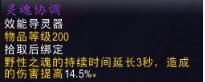 效果:治疗或造成伤害有几率获得一层心能转移。心能转移使你的最大生命值提高1%,精通提高25,持续30秒,效果可以叠加。