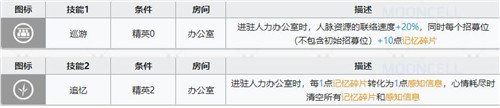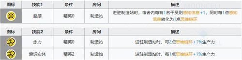 精英0即可开放,宿舍内每有1名干员则感知信息+1,同时会将所有感知信息转化为【思维链环】。