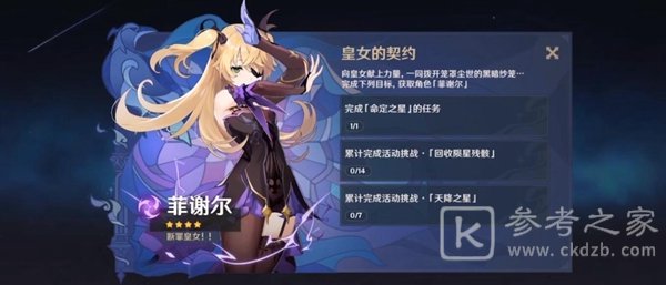 旅行者在参与活动过程中,完成「皇女的契约」中所有任务可获得角色「断罪皇女!!·菲谢尔(雷)」!