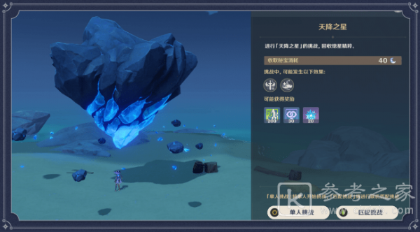 开启第三阶段挑战后,旅行者可以挑战「天降之星」,回收「熄星精粹」。挑战时可以选择单人挑战或者多人联机挑战。
