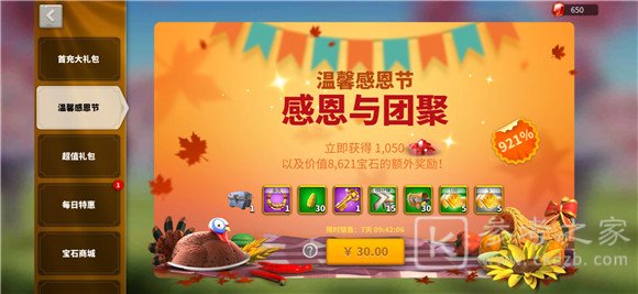 以上内容就是今天小编为各位玩家小伙伴带来的万国觉醒手游中感恩节礼包的介绍了,感觉这次的礼包内容还是非常丰富的,无论是活动道具还是头像框都是比较值得入手的。